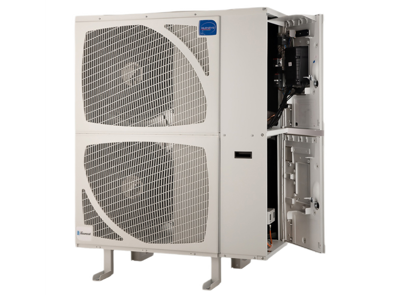 Spójna obudowa pozwala na montaż agregatu na dachach oraz ścianach budynków bez wykonywania jakichkolwiek dodatkowych zadaszeń.
