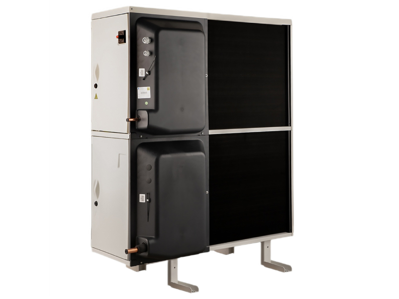 Urządzenie wyposażone jest w cichobieżny wentylator skraplacza, regulator obrotów wentylatora skraplacza, presostat ciśnieniowy WC/NC , grzałkę karteru sprężarki, wziernik cieczy, filtr odwadniający, główny wyłącznik elektryczny.
