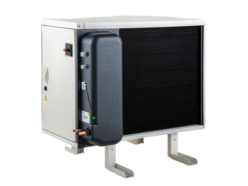 Urządzenie wyposażone jest w cichobieżny wentylator skraplacza, regulator obrotów wentylatora skraplacza, presostat ciśnieniowy WC/NC , grzałkę karteru sprężarki, wziernik cieczy, filtr odwadniający, główny wyłącznik elektryczny.
