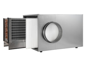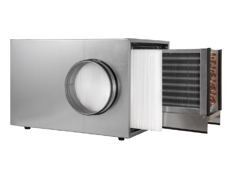 Chłodnico-nagrzewnica kanałowa glikolowa-wodna CHDW-G-200 do GGWC z filtrem G4, pod kanał wentylacyjny fi 200 mm