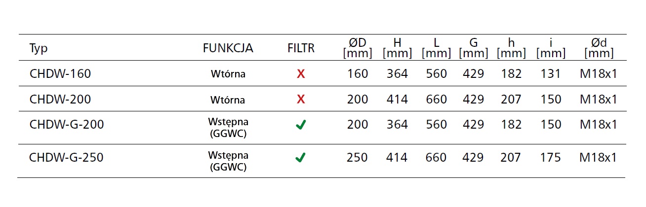 200 mm (z filtrem G4 do GGWC) |
