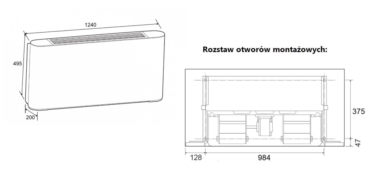Klimakonwektor fan coil przypodłogowo-podsufitowy 2-rurowy Sinclair SF-500F3