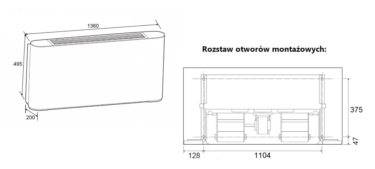 Klimakonwektor fan coil przypodłogowo-podsufitowy 2-rurowy Sinclair SF-700F3