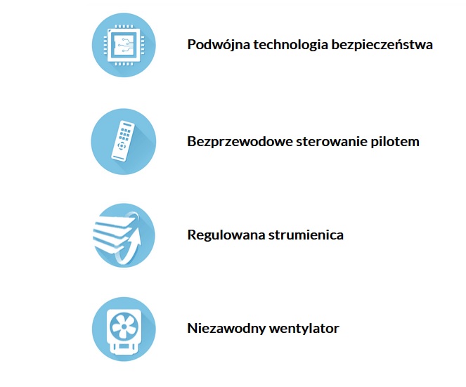 • Podwójna technologia bezpieczeństwa – dostosowanie kurtyny do zmian napięcia oraz bezpiecznik chroniący przed przepięciami,