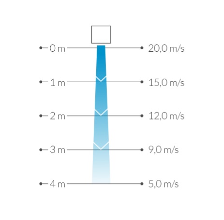Skuteczny zasięg strumienia powietrza wynosi 4 m.