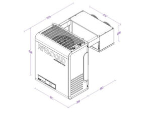 Monoblok jest agregatem chłodniczym składającym się ze skraplacza [A] i sterownika [B] znajdujących się na zewnątrz chłodni oraz parownika [C] znajdującego się wewnątrz chłodni. Sterownik urządzenia zarządza pracą obiegów chłodniczych i cyklami odszraniania.