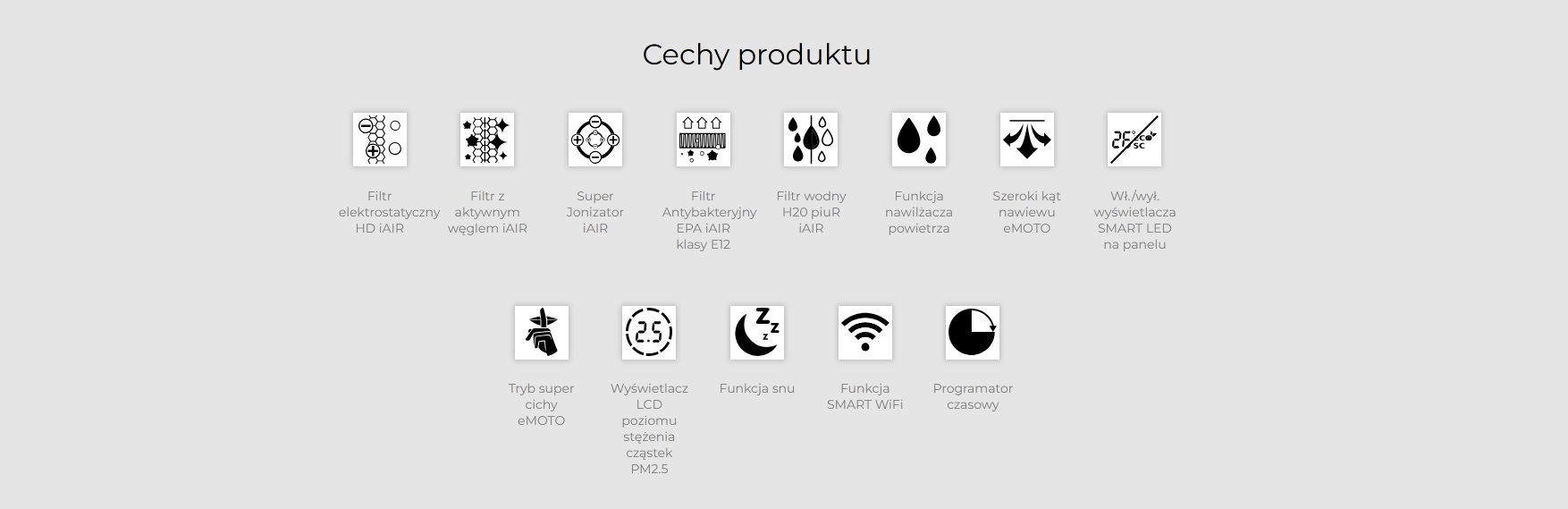 Skutecznie – na poziomie 97,6% – dezynfekuje powietrze z komórek bakterii, wirusów, grzybów i pierwotniaków. Zatrzymuje mikrocząsteczki alergenów, pyłków, roztoczy i zarodników pleśni. Równocześnie pochłania większość zanieczyszczeń mechanicznych (w tym cząstki PM 2.5 w 99,9%).