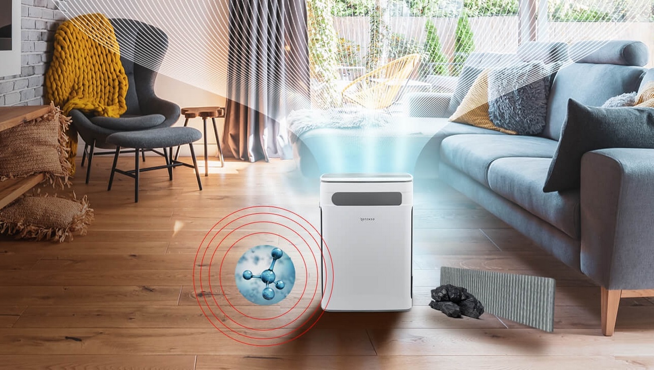 Ione to oczyszczacz, który zadba o filtrację oraz nawilżanie powietrza w Twoim mieszkaniu (pokojach i sypialniach).