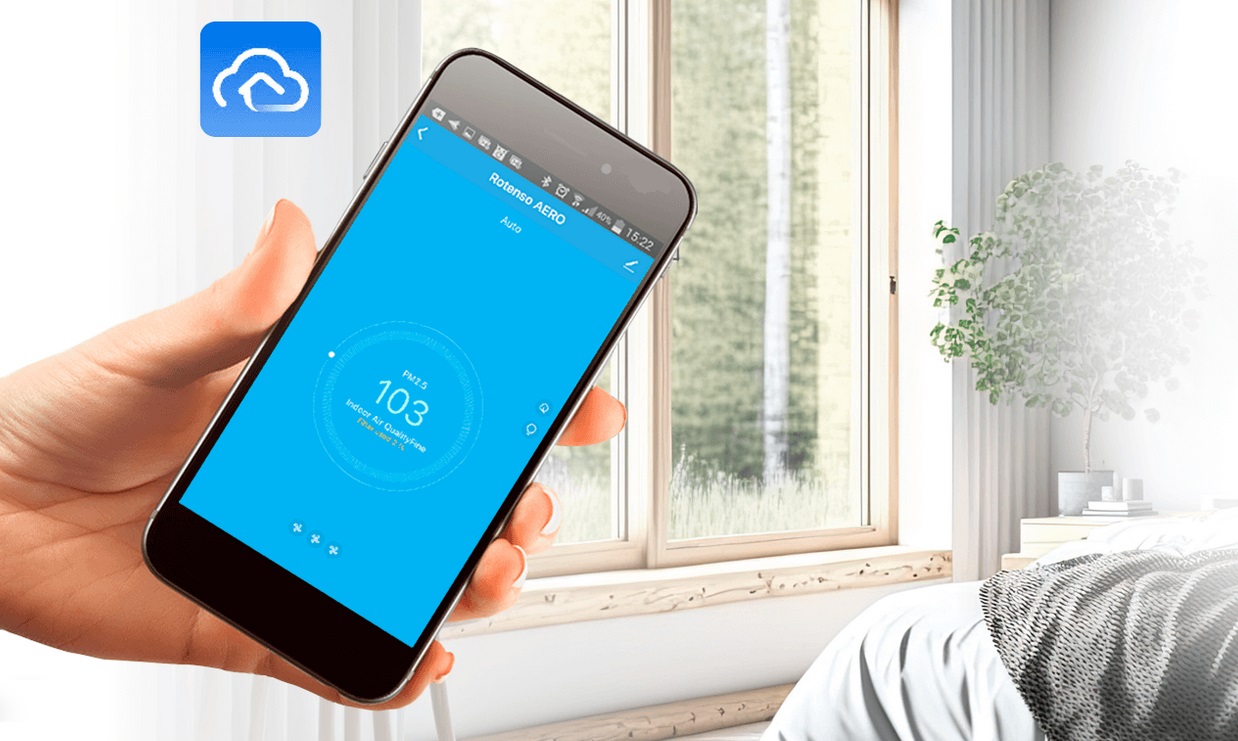 Oczyszczaczem Ione można sterować za pomocą tabletu lub smartfona zarówno w domu, jak i poza nim.