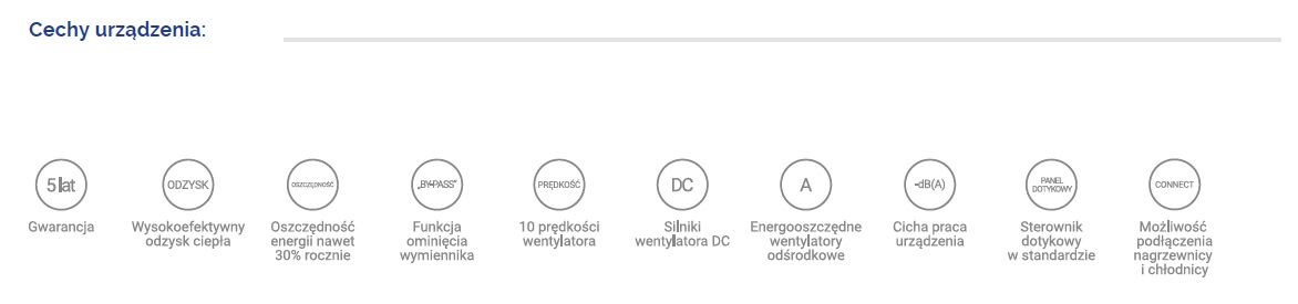 - Wysoka energooszczędność, systemu rekuperacji zapewniając 40% oszczędności energii w porównaniu z tradycyjną wentylacją mechaniczną