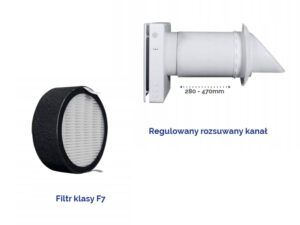 Rekuperator ścienny, kompaktowy HRS-HM50PRO to nowoczesne rozwiązanie zapewniające mechaniczną wymianę powietrza pomieszczeń nawet do 50 m3/h. Urządzenie wyposażone jest w ceramiczny wymiennik ciepła, który umożliwia nawiew świeżego i ogrzanego powietrza poprzez odzysk ciepła na poziomie do 97%. Dołączony w zestawie filtr klasy F7 zapewnia wydajną i skuteczną filtrację powietrza. Rozsuwany kanał umożliwia montaż przy różnej grubości ścian (280-470mm). Rekuperator został wyposażony również w pilot zdalnego sterowania, moduł Wi-Fi a także możliwość pracy w parach (praca synchroniczna)
