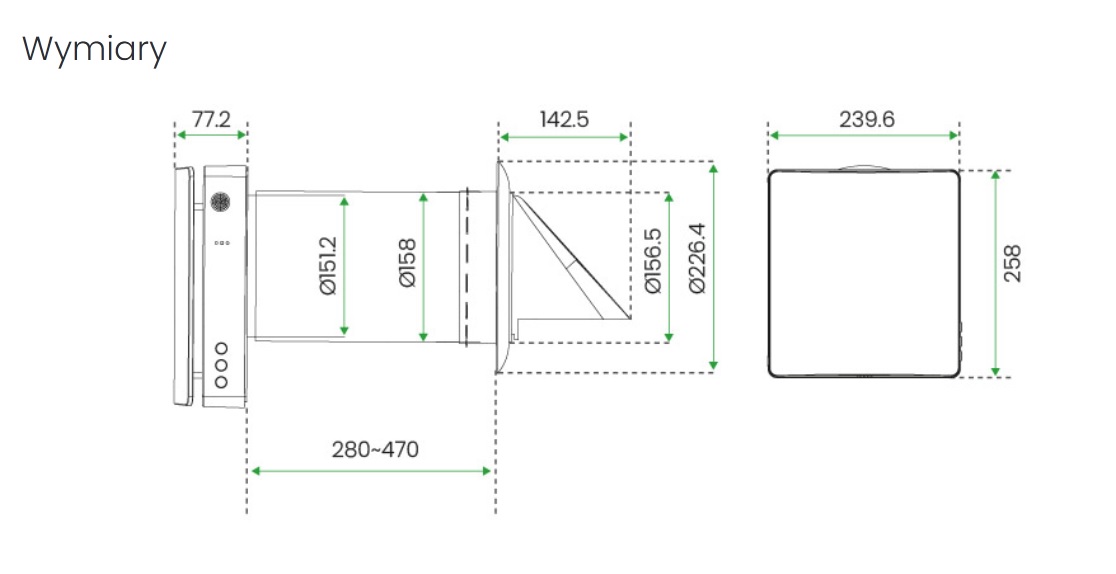 3. Tryb wyciągowy (urządzenie usuwa powietrze przez odpowiednią ilość czasu, następnie zaczyna pracować w trybie rekuperacji z odzyskiem ciepła.