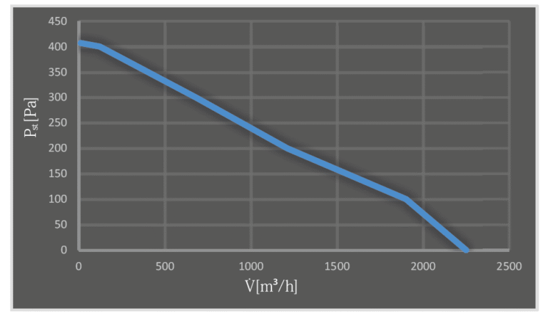 Wykonany z tworzywa sztucznego. Powietrze zasysane jest w kierunku osiowym i odprowadzane promieniowo za pomocą łopatek wirnika wygiętych do tyłu. Wentylator jest przymocowany do kratki. Bardzo wysoka klasa izolacji uzwojeń silnika F oraz klasa szczelności IP44 gwarantują bezproblemową pracę.