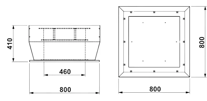 Podstawa wentylatora dachowego: wykonana ze stali ocynkowanej. Umożliwia łatwy montaż wentylatora do podstawy dachowej.