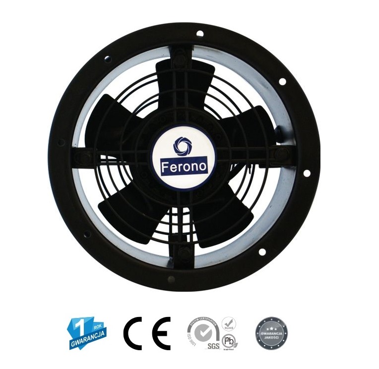 Czarny kolor wentylatora i estetyczne wykonanie sprawiają, że może być on śmiało montowany w obiektach użyteczności publicznej. Wentylator kanałowy osiowy FERONO cechuje się mocną konstrukcją, wysoką wydajnością, niskim poziomem hałasu, łatwym montażem oraz stabilną pracą.