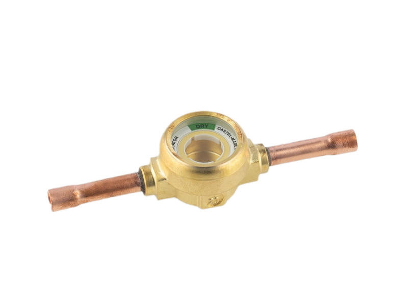 Wziernik firmy Castel posiada pierścień który zmienia kolor z zielonego na żółty w zależności od wilgoci w systemie. Wziernik posiada hermetyczną obudowę aby uniknąć ewentualnych wycieków czynnika chłodniczego.